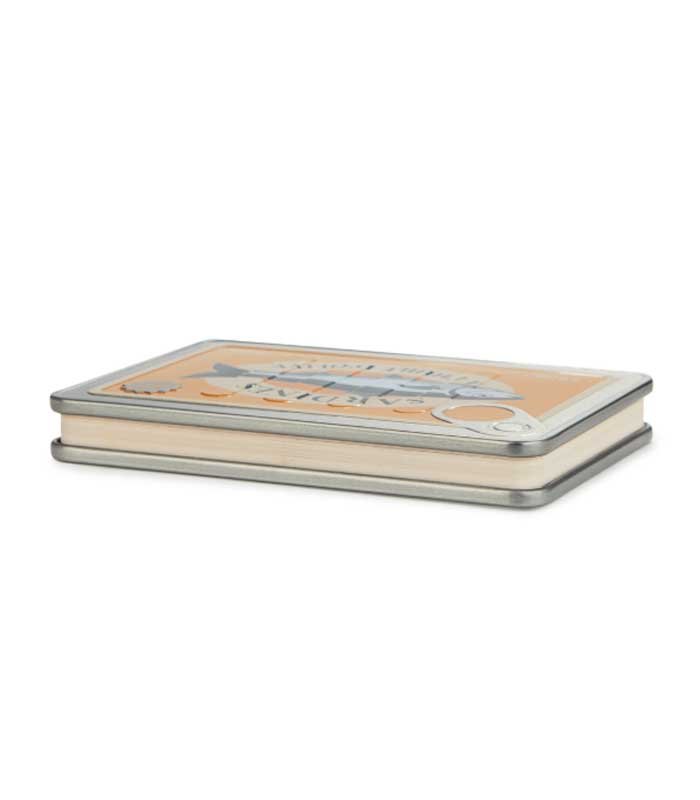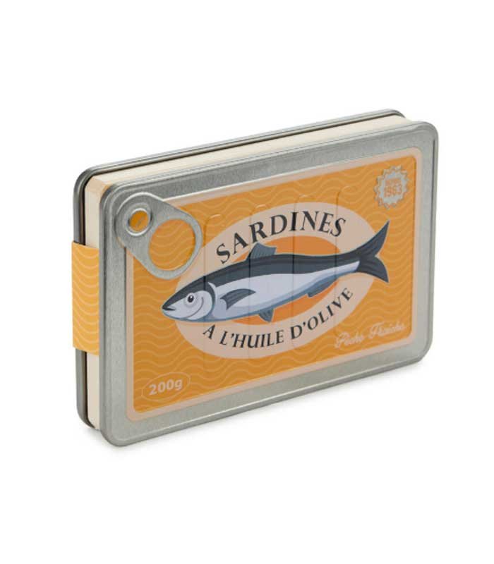 DISEÑO ORIGINAL. Esta libreta sorprende por su realismo y originalidad, imitando una lata de sardinas vintage.